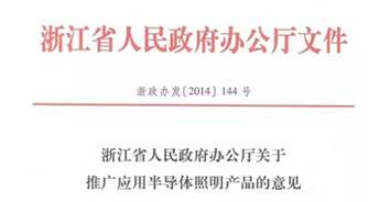 014年12月,浙江省政府發(fā)文【浙政辦發(fā)(2014)144號】文件,關于推廣應用半導體照明產品的意見,總體要求自2015年起,鼓勵全省新建公共照明工程