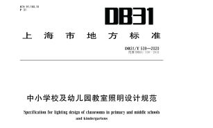 《中小學(xué)校及幼兒園教室照明設(shè)計(jì)規(guī)范》DB31/539-2020